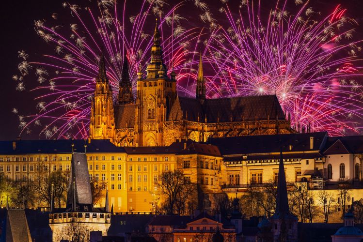 Pusryčiai. Vykstame į Čekijos sostinę Prahą – vieną gražiausių Europos miestų, šventiniu laikotarpiu tampančią tikra pasaka: senamiestyje kvepia cinamonu ir karštu vynu, skamba muzika, o aikštės spindi kalėdinėmis dekoracijomis. Apsilankymas ant aukščiausios miesto kalvos IX a. pastatytoje Prahos pilyje*, kadaise buvusioje svarbiausia Habsburgų rezidencija. Dabar tai įspūdingas įvairių architektūros stilių pastatų kompleksas, užimantis apie 70 tūkst. m² plotą, kuris yra įtrauktas į UNESCO pasaulio paveldo sąrašą. Turėsite galimybę apsilankyti gotikinėje Šv. Vito katedroje, kur apžiūrėsite koplyčioje saugomas šventas relikvijas, karališkuosius antkapius ir Bohemijos karūnos brangenybes. Taip pat apsilankysite X a. romaninio stiliaus Šv. Jurgio bazilikoje ir Senuosiuose karališkuosiuose rūmuose, kuriuos sudaro net keli lygmenys, o garsiausia patalpa rūmuose yra Vladislovo salė, kurioje vykdavo valstybinės svarbos reikalai bei riterių turnyrai. Galėsite pasivaikščioti pilies kiemuose ir pilį supančiuose parkuose, iš kurių atsiveria nuostabi miesto panorama. Taip pat norintys galės užsukti į siaurą Auksinę gatvelę - jaukią, spalvingą ir ypač šventiškai atrodančią žiemos metu. Gatvelėje apžiūrėsite mažyčius, ryškiaspalvius namelius, įmūrytus į pilies sienų arkas, kuriuose iš pradžių gyveno pilies sargybiniai, o vėliau čia persikėlė auksakaliai. Dabar čia veikia įvairios ekspozicijos, bei amatininkų parduotuvėlės. Tęsiant pažintį su miestu po Prahos pilimi esančiuose šlaituose įsikūrusiame „Mažajame mieste“ pamatysime barokinę Šv. Mikalojaus bažnyčią. Perėję Karolio IV pėsčiųjų tiltą, puoštą barokinėmis skulptūromis, pasieksime senamiestį, kur apsilankysime Senamiesčio ir Vaclovo aikštėse. Taip pat apžiūrėsime Senamiesčio rotušę, kurią sudaro sujungti vaizdingi gotikiniai bei renesansiniai pastatai ir grožėsimės unikaliu Prahos astronominiu laikrodžiu. Vykstame į viešbutį. Įsikuriame. Laisvas laikas, kurio metu galėsite pasimėgauti šventine atmosfera, apsilankyti kalėdinėse mugėse, įsigyti dovanų, paragauti tradicinių čekiškų patiekalų. Naujųjų metų sutikimas Prahos senamiestyje ir Vltavos upės pakrantėje. Vakarą skirsime šventinei nuotaikai: senamiestis, šviesos, muzika ir ypatinga atmosfera, kurią kuria tūkstančiai žmonių, susirinkusių pasitikti naujjų metų. Po vidrunakčio grįžtame į viešbutį Prahoje. Nakvynė.